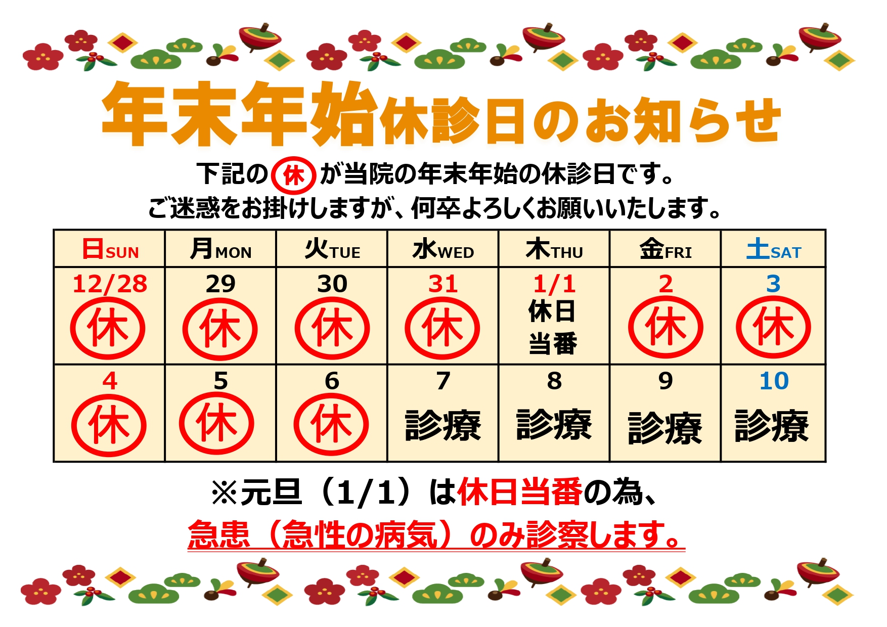 • 休診のお知らせ